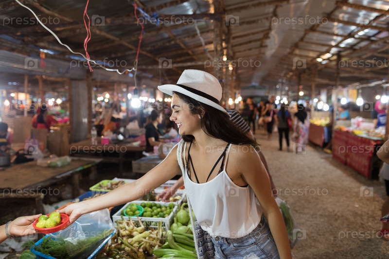 Счастливая женщина на рынке
