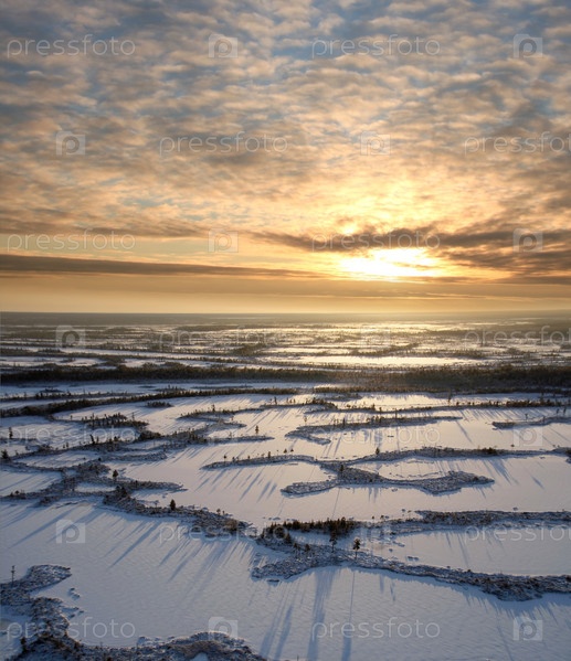 Снежные просторы с высоты птичьего полета