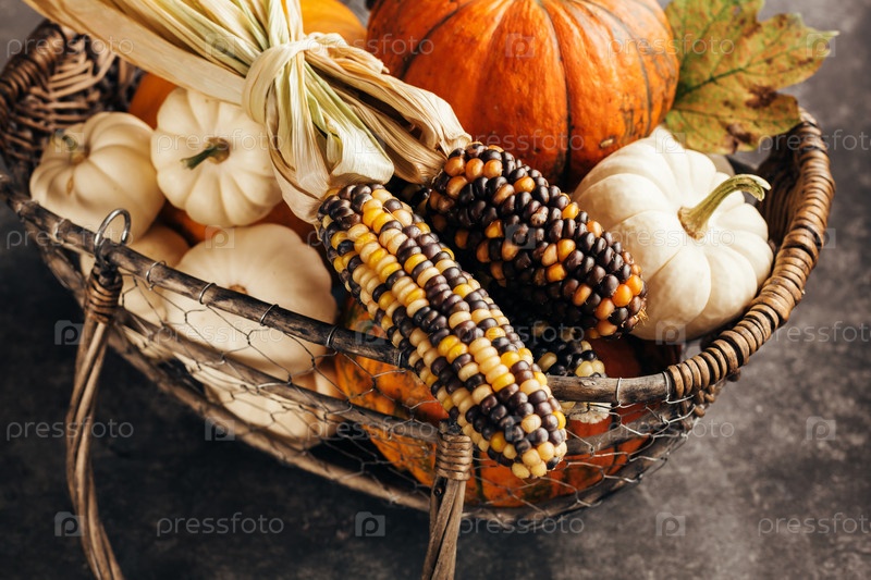 Тыквы и кукурузы в корзине