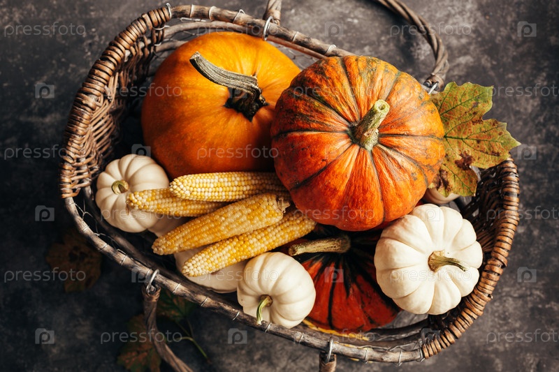 Тыквы и кукурузы в корзине