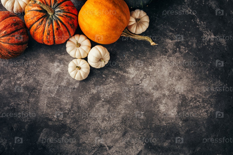 Оранжевые и белые тыквы на черном фоне