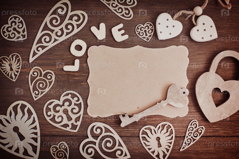 Сердца на деревянном фоне