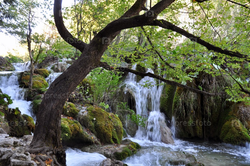 Маленькая река с водопадами в национальном парке Плитвице, Хорватия