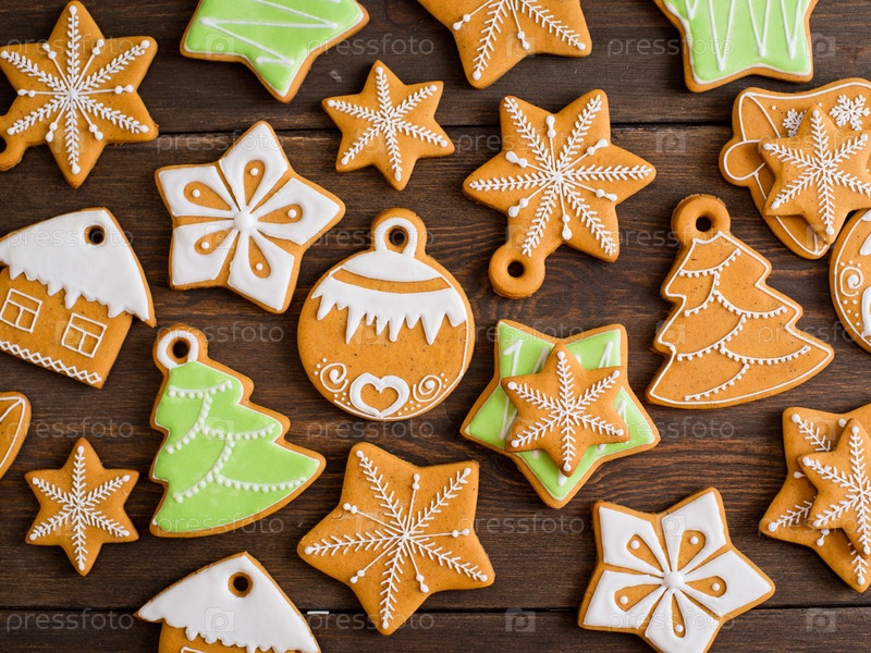 Рождественские домашние пряники на деревянном фоне
