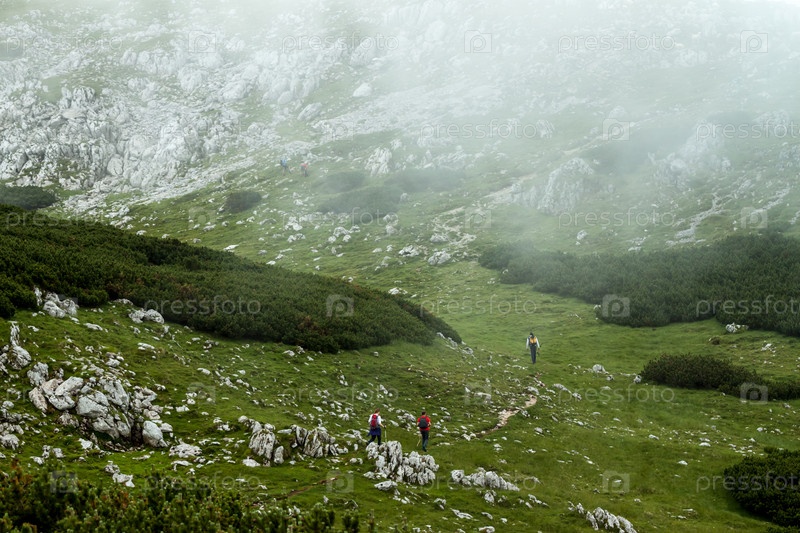 Туристы на пути в горах