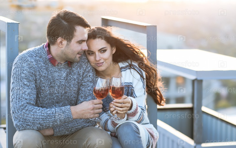 Мужчина и женщина с бокалами на открытом воздухе
