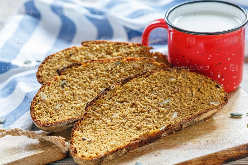 Ломтики тыквенного хлеба и кружка молока