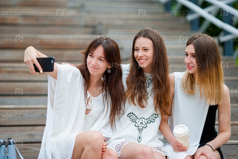 Селфи-портрет молодых позитивных девушек