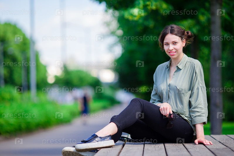 Счастливая молодая городская женщина в парке