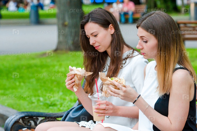 Женщины едят гамбургеры