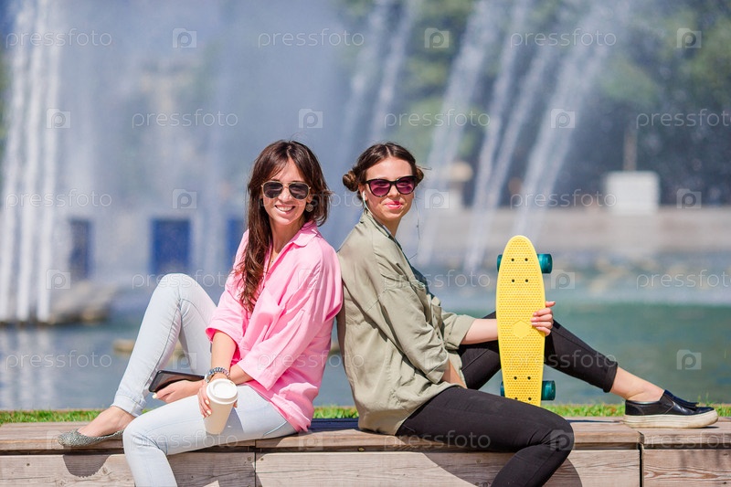 Портрет счастливых молодых городских девушек