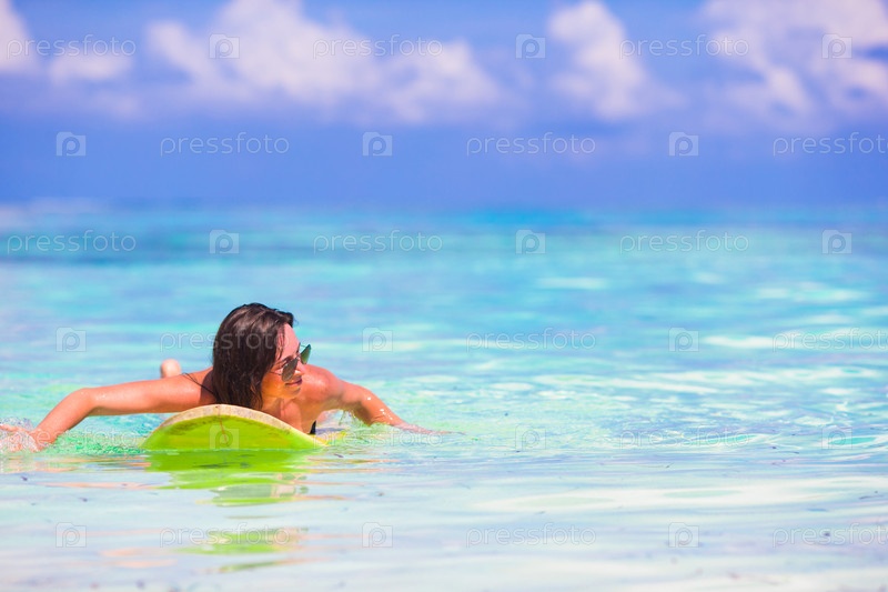Портрет счастливой девушки на белом песчаном пляже