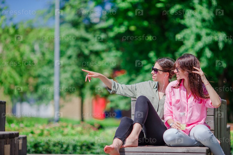 Счастливые молодые девушки в европейском городе