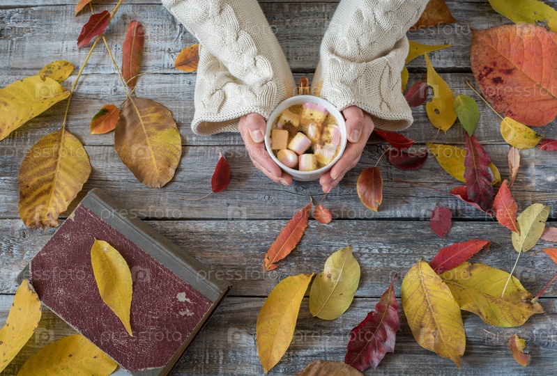 Осенний горячий шоколад в руках