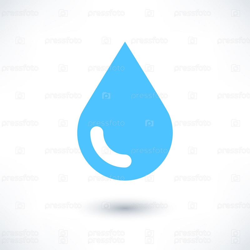 Синий значок капли воды с тенью на белом фоне