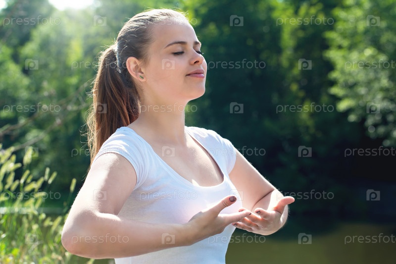 Женщина делает йогу в парке