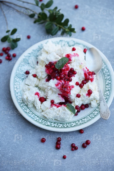 Творог с клюквенным вареньем