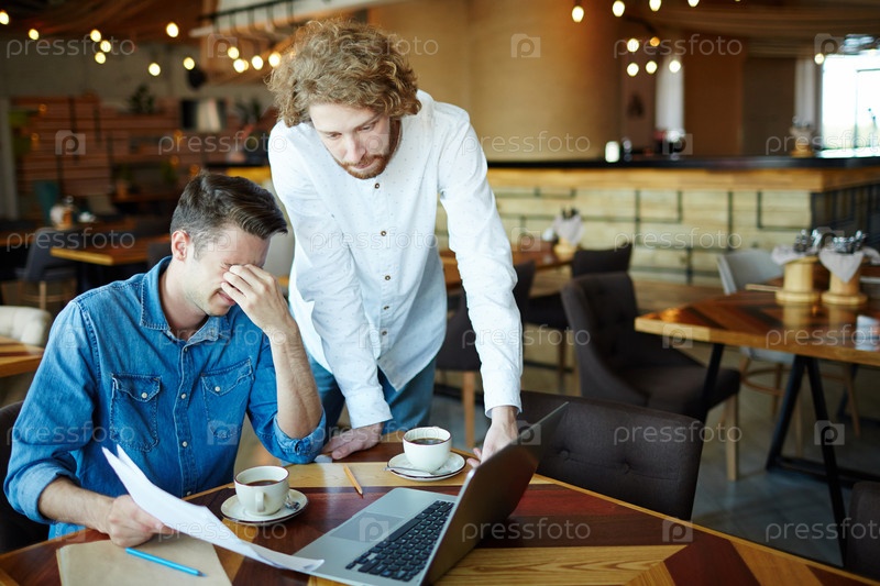 Усталые менеджеры в кафе