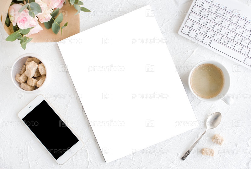 Женственный фон с кофе и розами