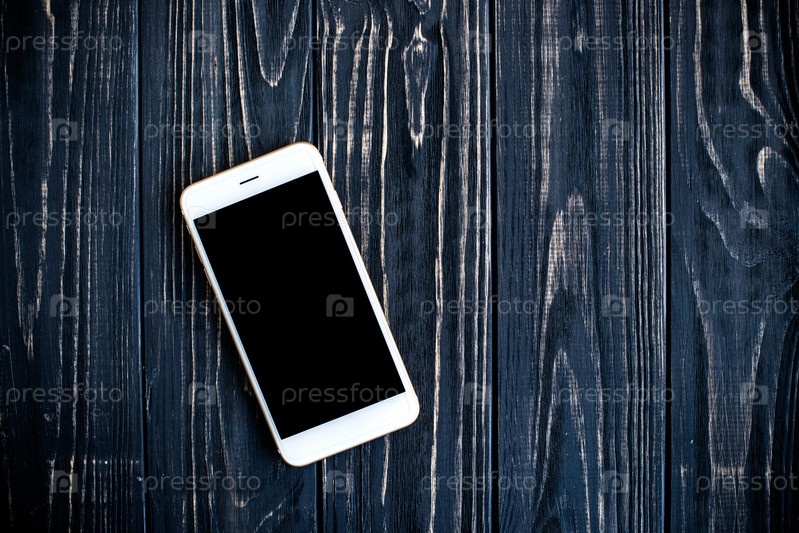 Смартфон на черном деревянном столе