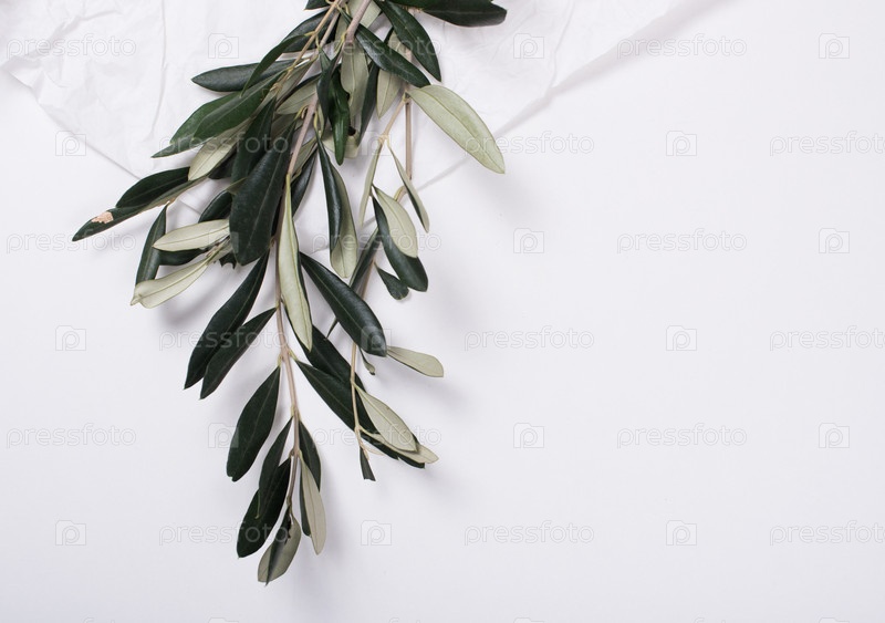 Оливковые ветви на белом столе