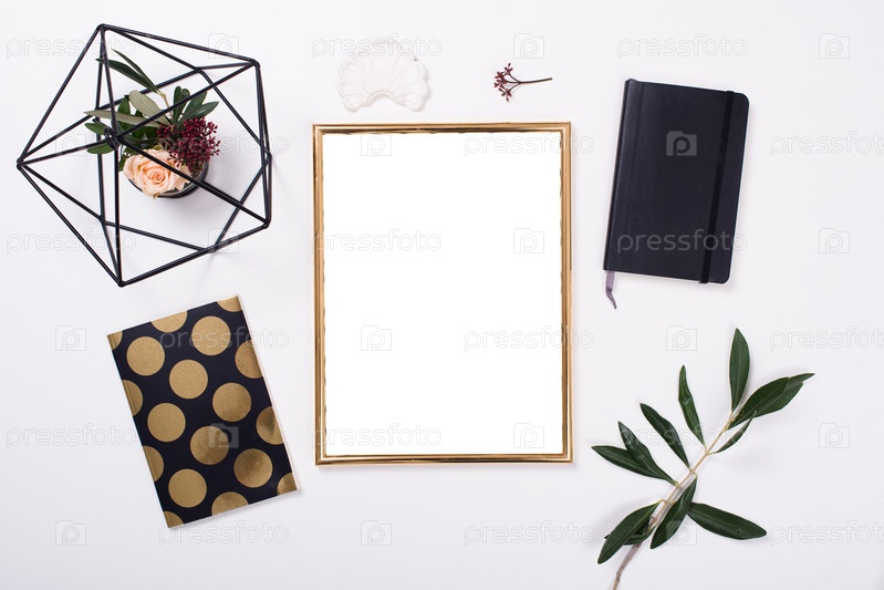 Золотая рамка на белом столе