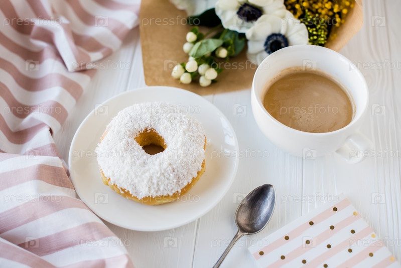 Кофе и пончики с живыми цветами