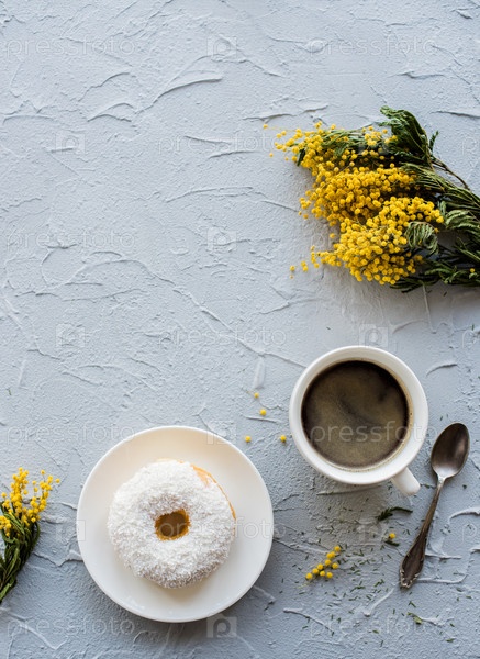 Чашка кофе и пончик