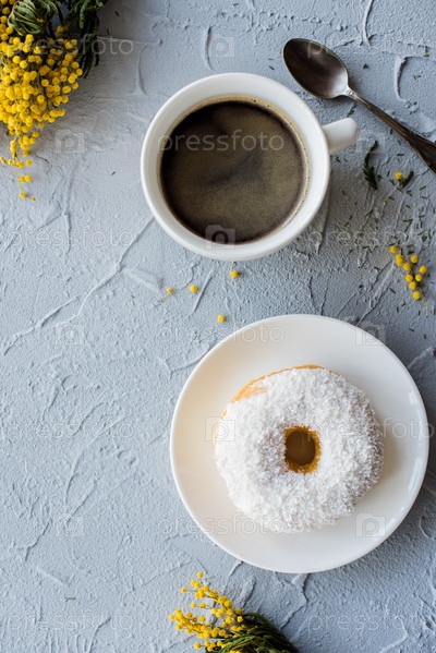 Чашка кофе и пончик
