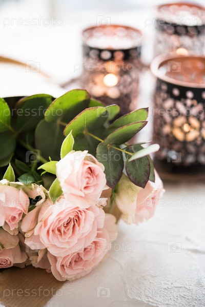 Букет роз и свечи