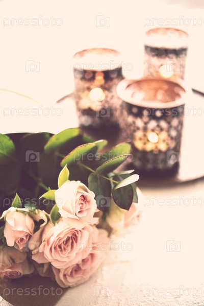 Букет роз и свечи