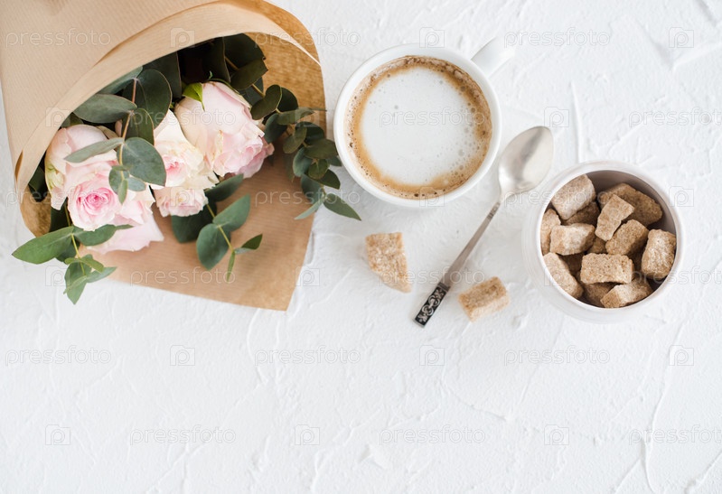 Романтический женственный фон с кофе и розами
