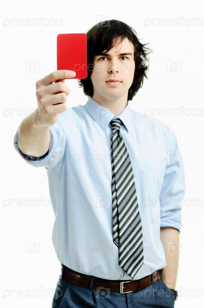 Парень показывает красную карточку