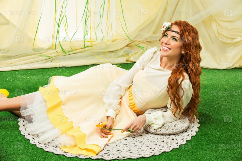 Красивая девушка в желтом платье