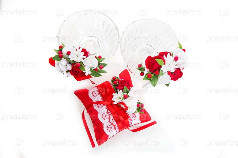 Хрустальные бокалы с красным цветочным декором