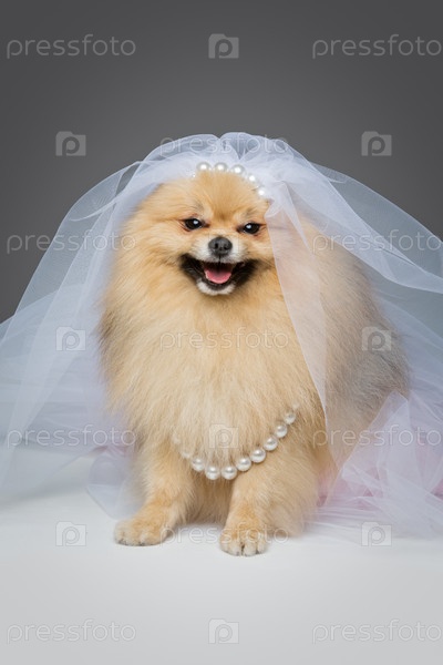 Красивый шпиц в фате невесты