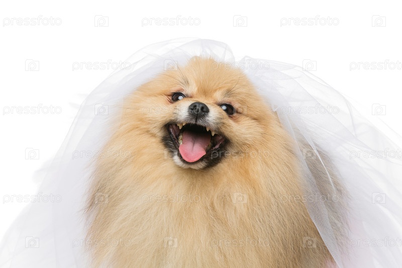 Красивый шпиц в фате невесты