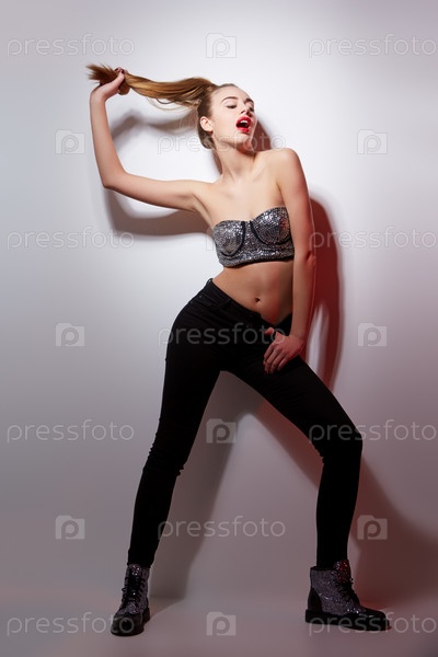 Красивая девушка в блестящем бюстгальтере
