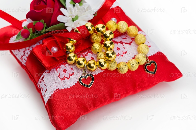 Подушки с золотыми браслетами