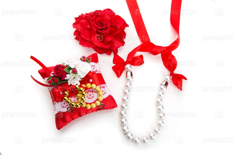 Красные цветочные украшения и браслеты