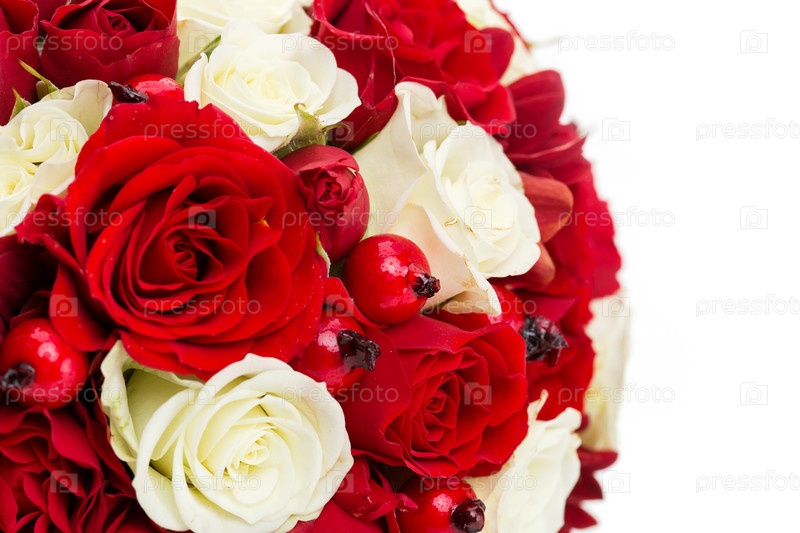 Свадебный букет с красными и белыми розами