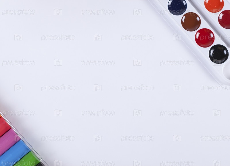 Акварельные краски и пластилин на белом фоне
