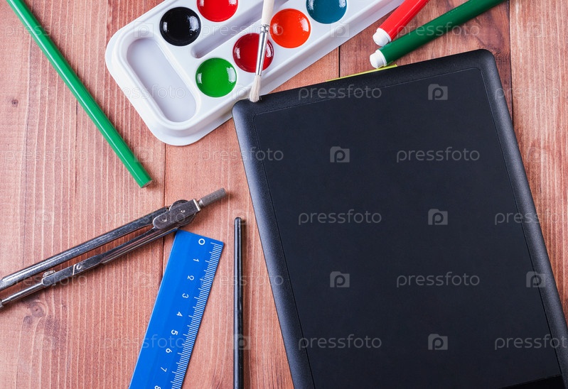 Стол со школьными принадлежностями