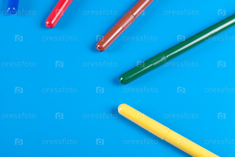 Цветные маркеры на синем фоне