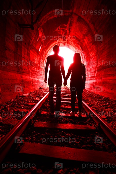 Пара в любви в туннеле