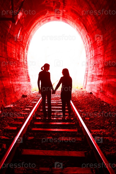 Пара в любви в туннеле