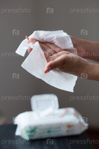Чистые руки с влажными салфетками