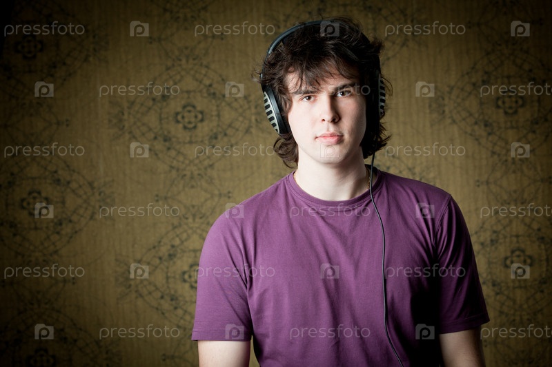 Портрет молодого парня в наушниках