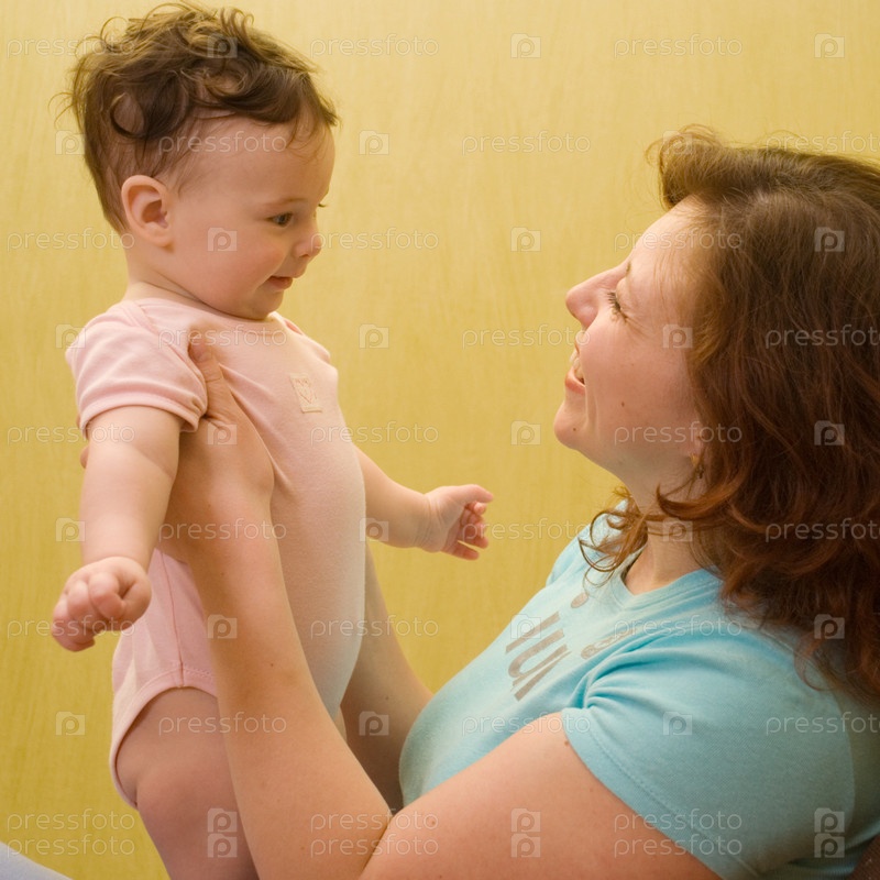 Мама держит на руках малыша после купания