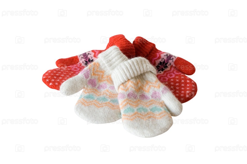 Вязанные варежки на белом фоне